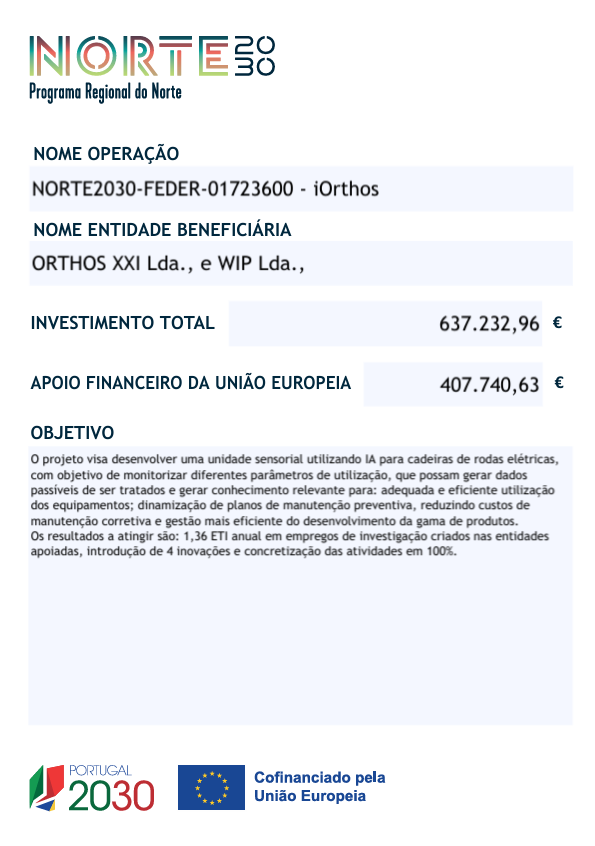 Nome Operação: NORTE2030-FEDER-01723600 – iOrthos